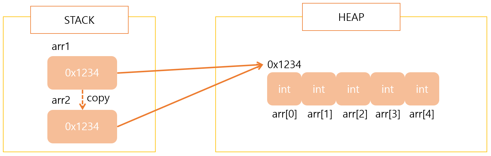 int[] copyArr = originArr; // 참조 주소 값 복사(얕은 복사) / 활용하는 걸 이해하자!!