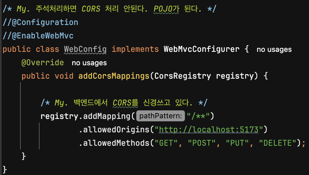 1. 백엔드에서 CORS 처리 못하게 한다.