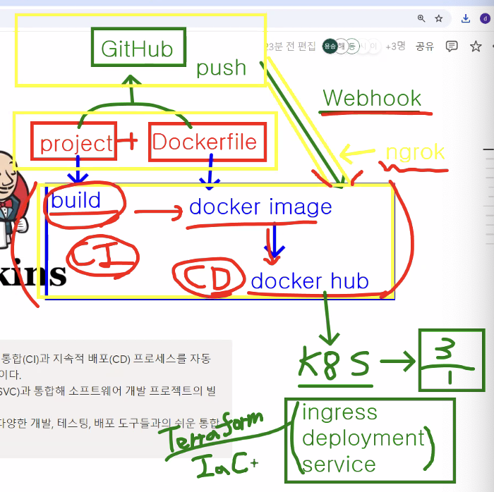 여기서 무언가 수정이 되고 깃허브에 푸쉬를 하면 Webhook이 발생하고