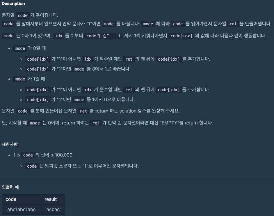 문제가 너무 길다...요약하면 mode가 0이면 짝수 인덱스 값을! mode가 1이면 홀수 인덱스 값을 추가해서 최종 값을 도출하는 것이다.