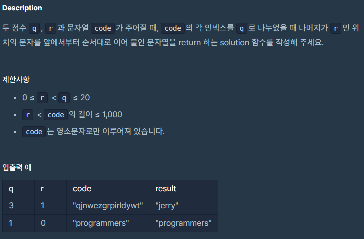 어떻게 풀면 쉽게 풀 수 있을까 생각을 해보니 첫 번째 예를 보면 3으로 나눠서 나머지가 1이 나오는 것은 1, 4, 7, 10, 13...r을 시작으로해서 q만큼 차이가 나는...즉, 첫째항이 r이고 공차가 q인 등차수열을 나타내면 된다.