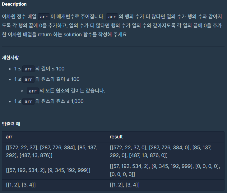 arr.append([0]*len(arr[i])) #열의 끝에 0을 추가한 이차원 배열